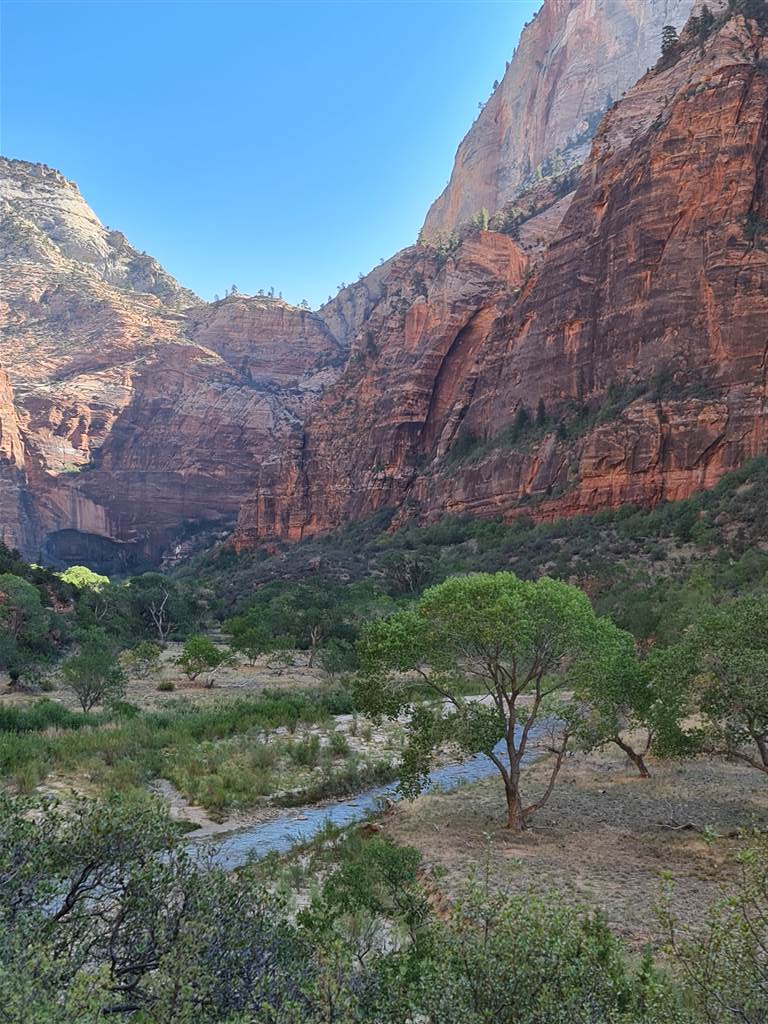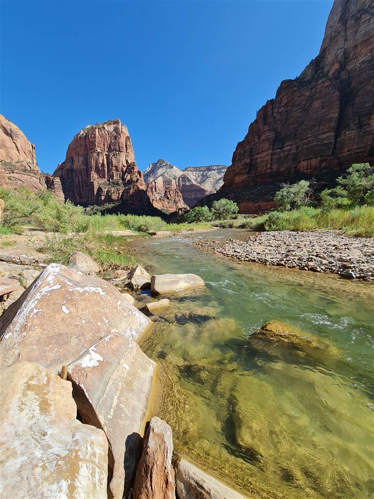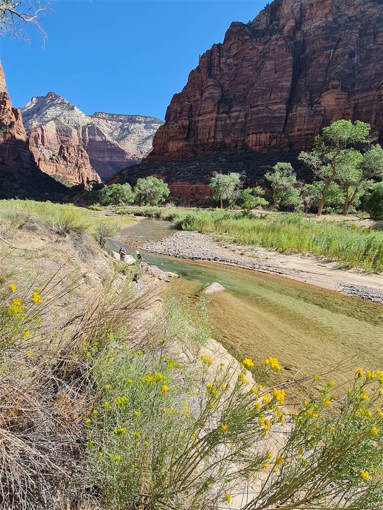 זאיון של שילוב הירוק, הסלעים האדומים, והנהר