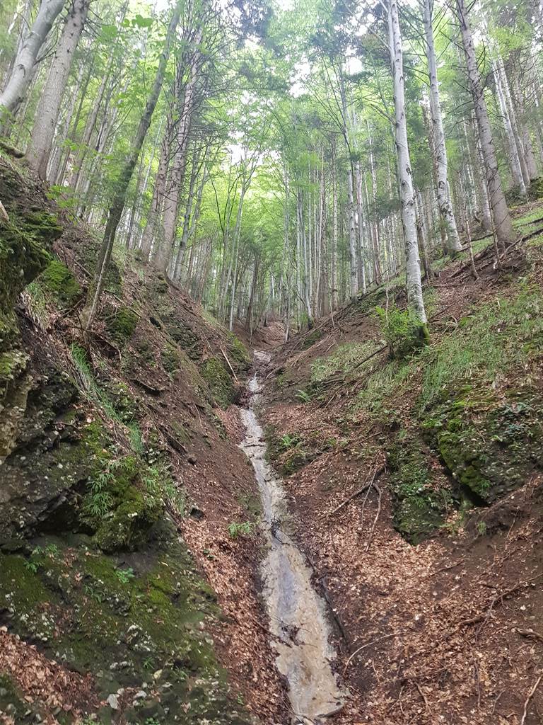 מתחילים בעליה תלולה ביער, ולאחריה ירידה תלולה למדי.