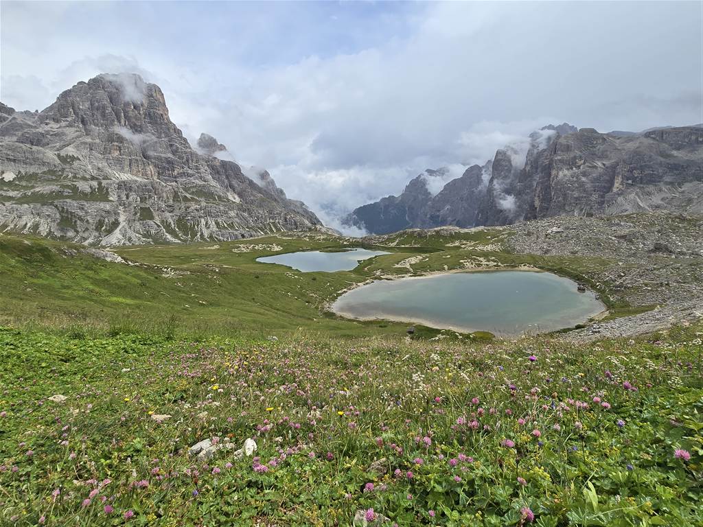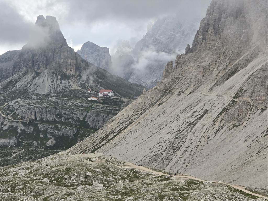 אני מתלבטת אם לעשות את המסלול הקצר Cadini di Misurina שיוצא גם הוא מפה או ללכת בגדול על המסלול המלא של הטרה צ'ימה, מסתכלת כה וכה ורואה אינספור מטיילים ממשיכים לכיוון הטרה צ'ימה ומגיעה למסקנה שנלך על זה, אף אחד לא מתרשם פה מהתחזית.