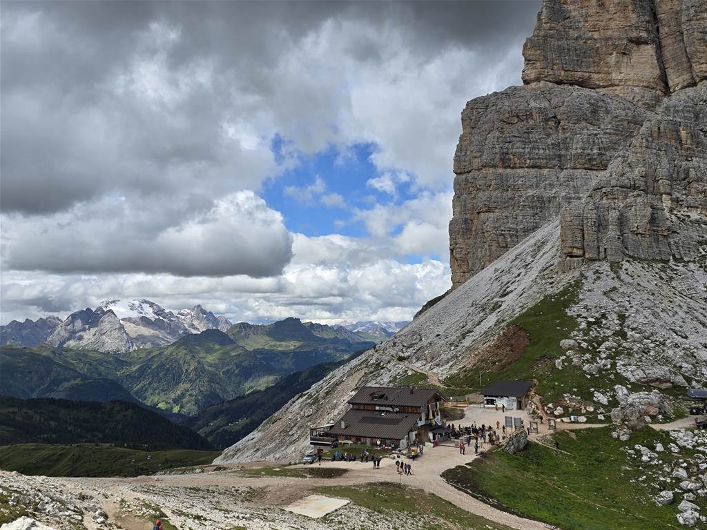הנה מבט מהדרך על Rifugio Averau שהיינו בה קודם ועכשיו נמצאת מתחתינו