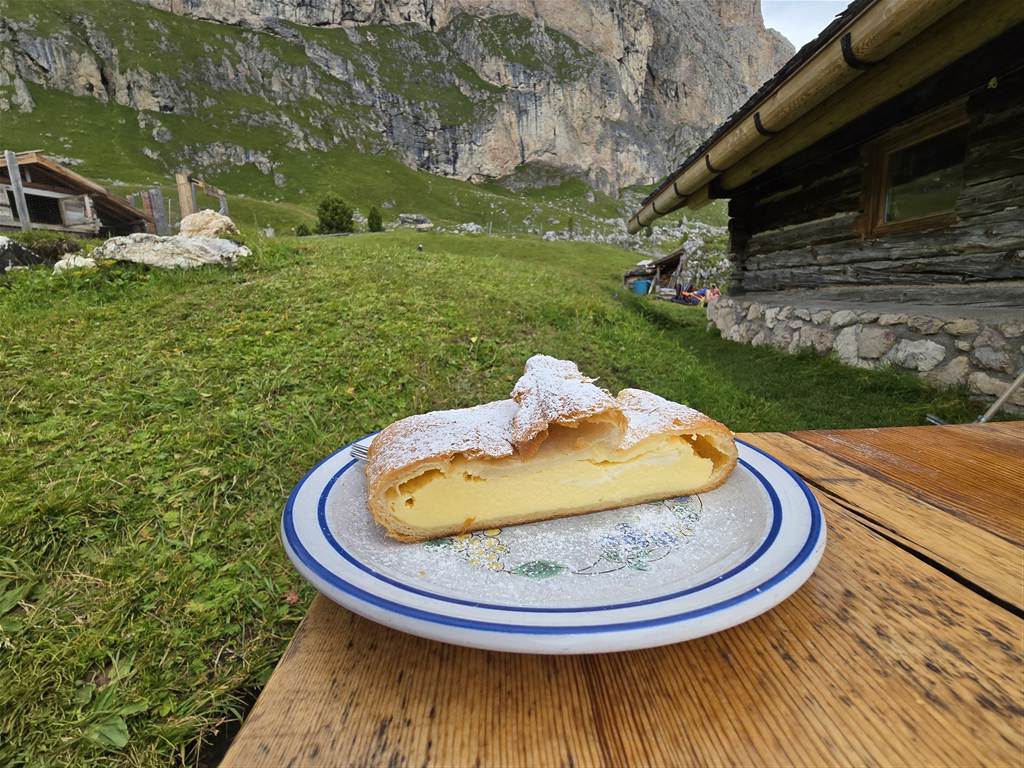 אנחנו מגיעים לבקתה, איזה כיף לנוח עם ארוחת צהריים. תפריט לא ענק אבל מה שבטוח – על שטרודל גבינה לא מוותרים!
