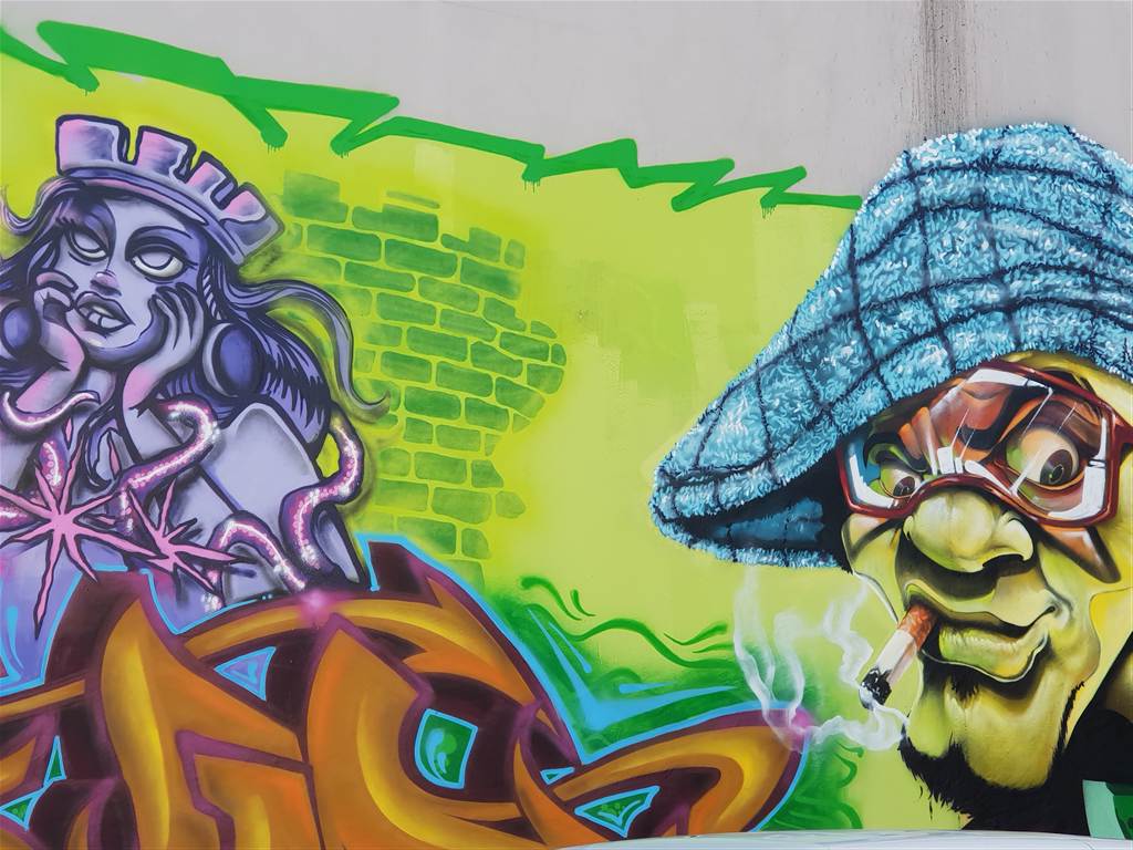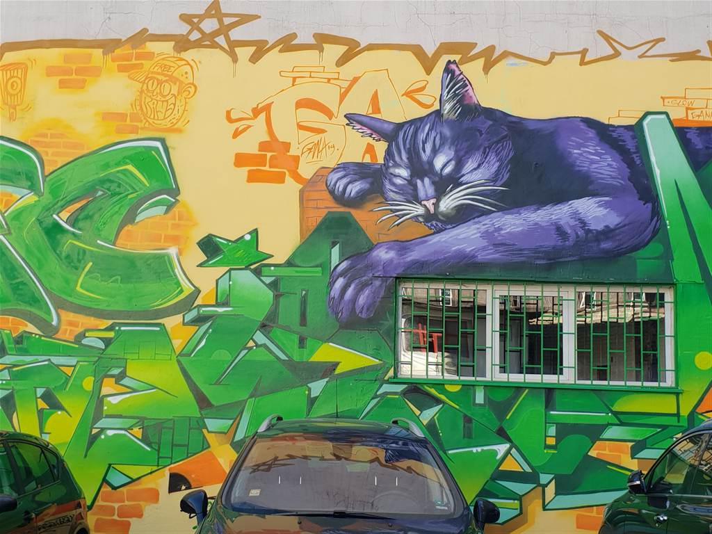 הוא נמצא בחניון פתוח, על קיר נוסף אני מוצאת הפתעה – ציורים נוספים שלא קראתי עליהם מראש באינטרנט…