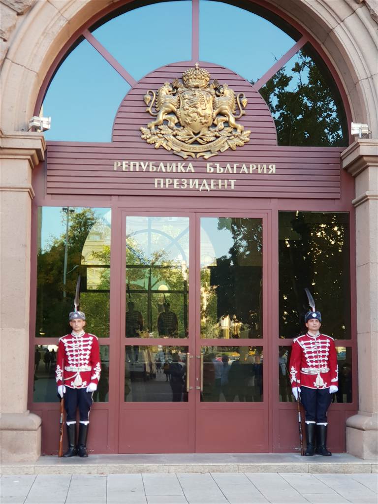 אנחנו ממשיכים בטיול רגלי, עוברים ליד בית הנשיאות בו ניצבים שני שומרים (בגוגל מפס President of Republic of Bulgaria).
