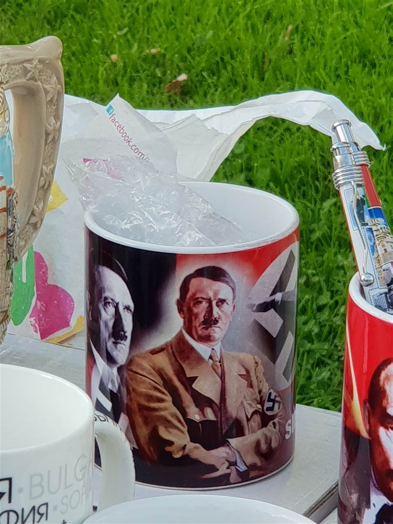 אני נזכרת בשוק של קרקוב, בו גם מכרו סחורה מימי הנאצים, אבל הקפידו לכסות במדבקה את צלב הקרס עצמו וגם אמרו לנו "היטלר קאפוט".