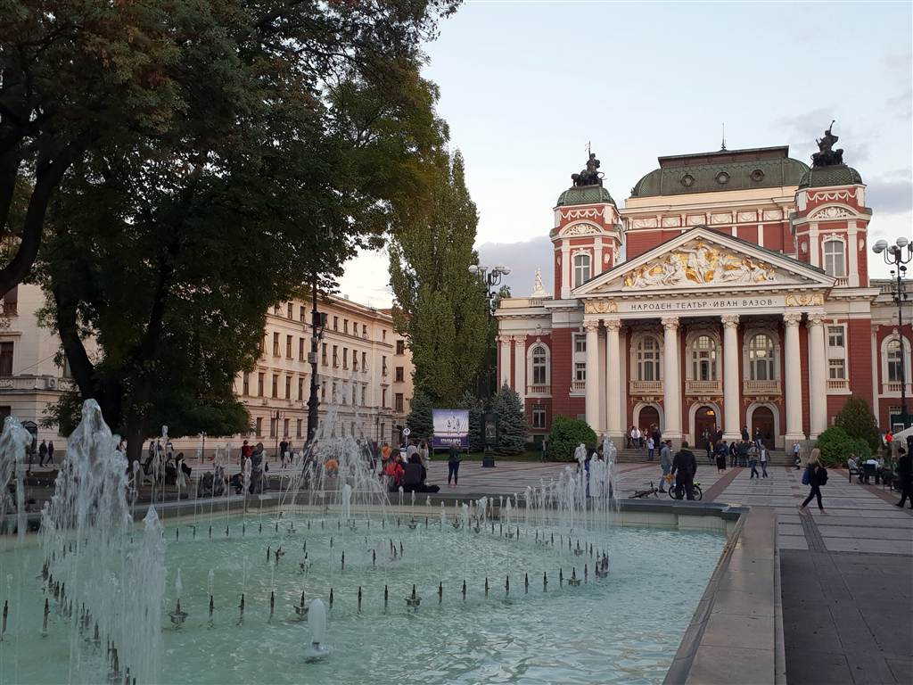 אנחנו מתחילים לחזור לכיוון הדירה, בדרך עוברים ליד התיאטרון הלאומי ע"ש Ivan Vasov, לידו פארק יפה.