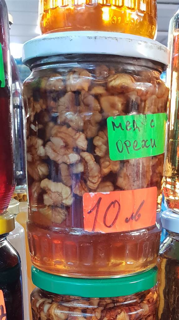 אחד המעדנים המקומיים הוא אגוזים משומרים בדבש.. שווה לנסות.