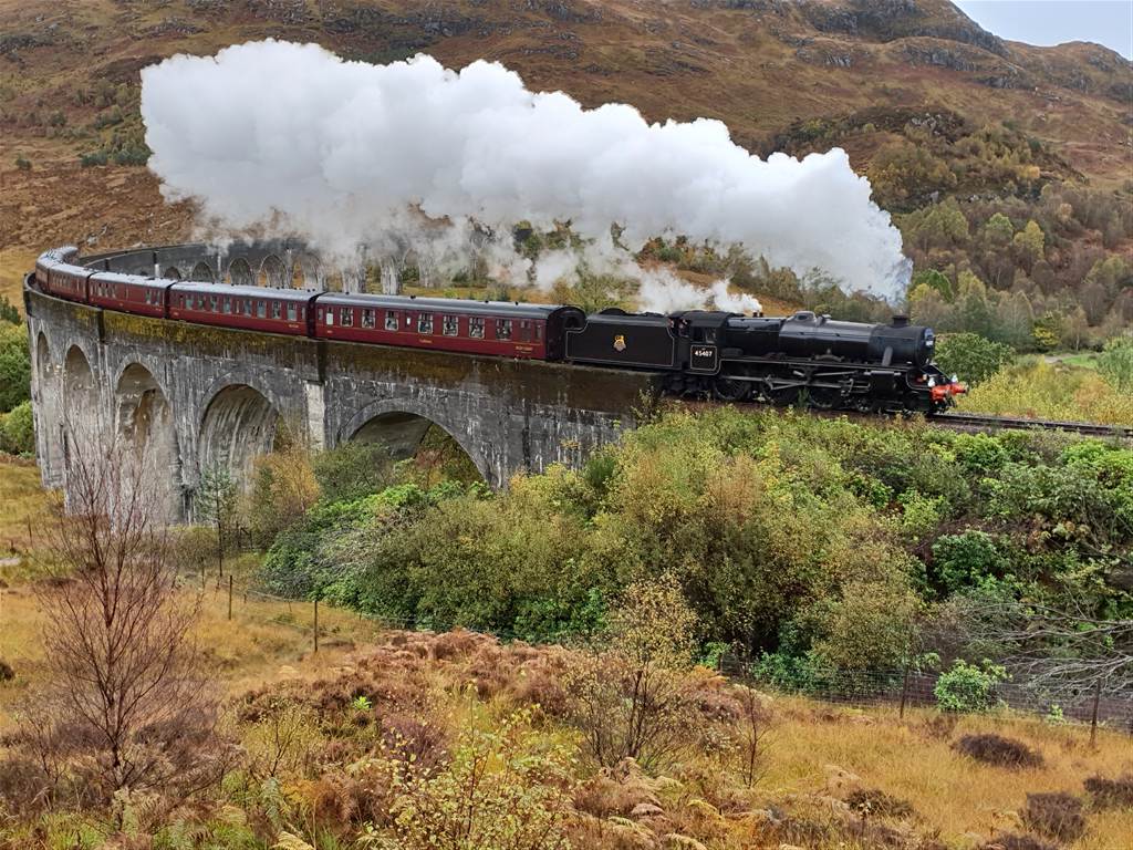 צפיה ב "רכבת הארי פוטר" (או בשמה הרשמי – Glenfinnan Viaduct train ) עוברת בדיוק במקום בו צולמה לסרט על אותו גשר קשתות מפורסם.