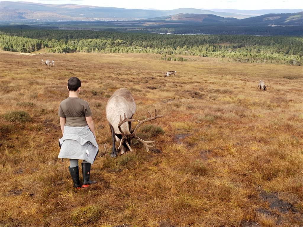 אחת החוויות המומלצות באבימור היא מפגש ישיר עם עדר איילי צפון The Cairngorm Reindeer Herd