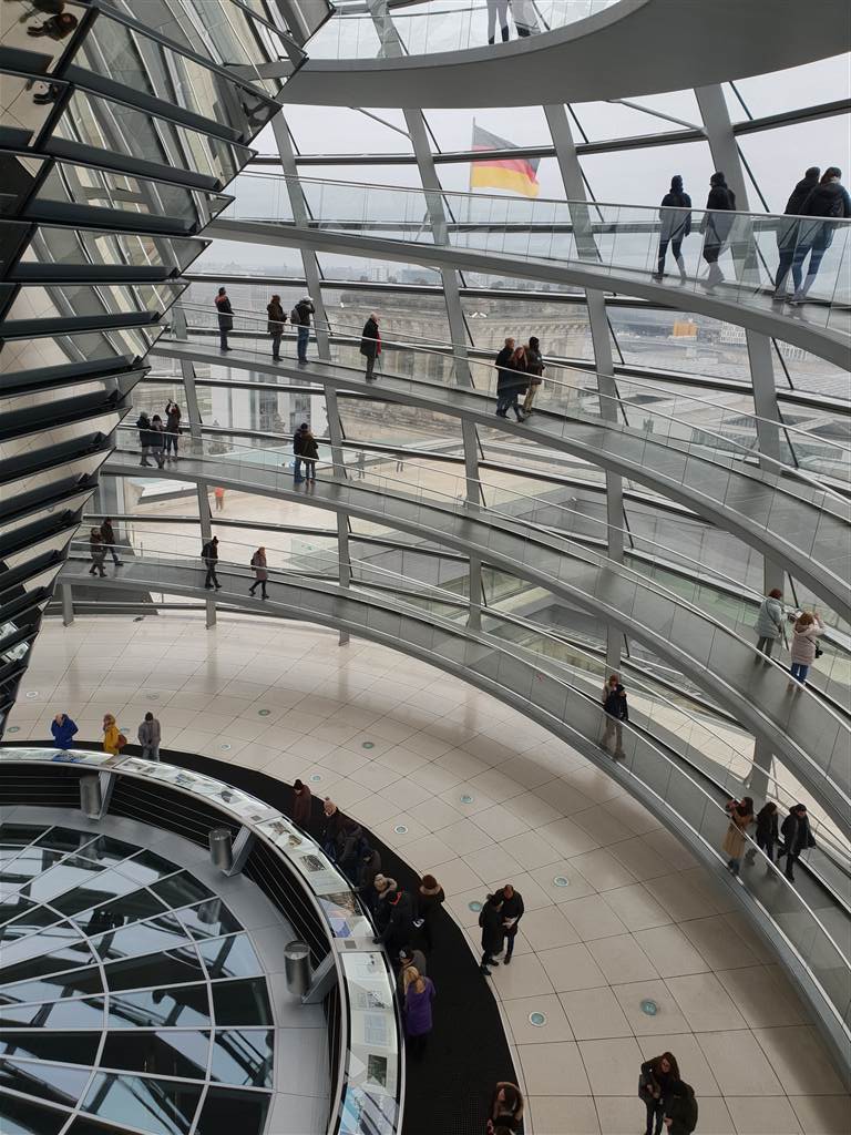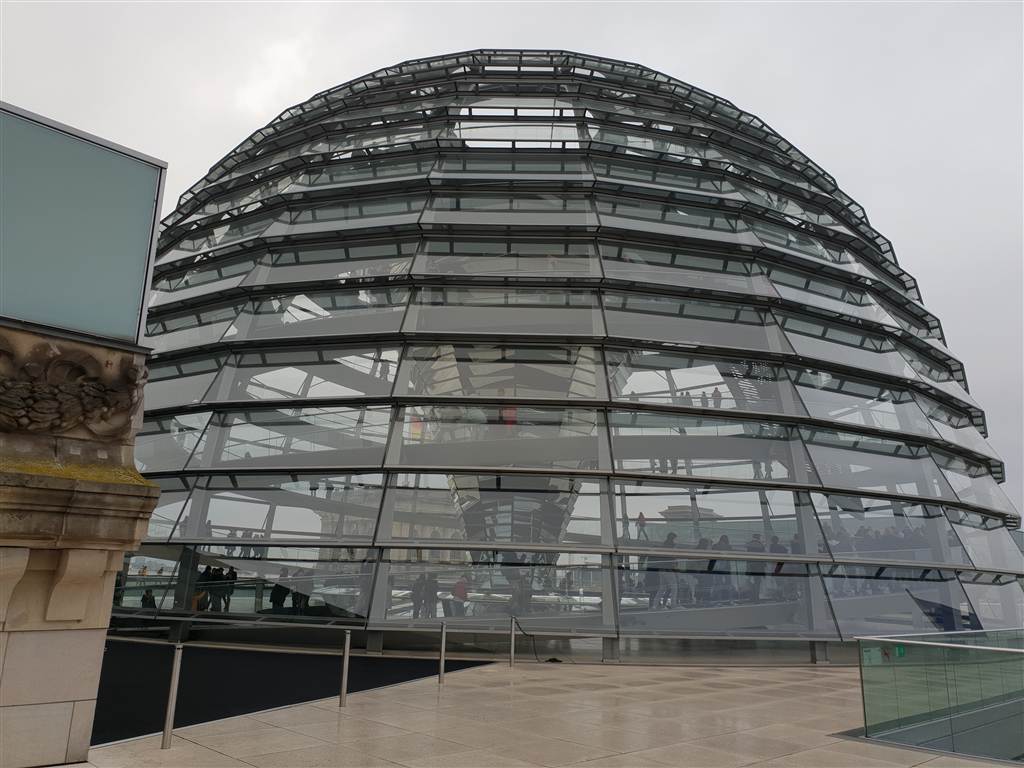 מתחילים בביקור שהוזמן מראש לכיפה של הרייכסטאג. כמו שכתוב בכל מקום, הביקור חינמי אך יש לתאם מראש פה. בזמן הביקור שלנו לא היו זמינים סיורים מודרכים בבנין אלא רק ביקור עצמאי בכיפה.