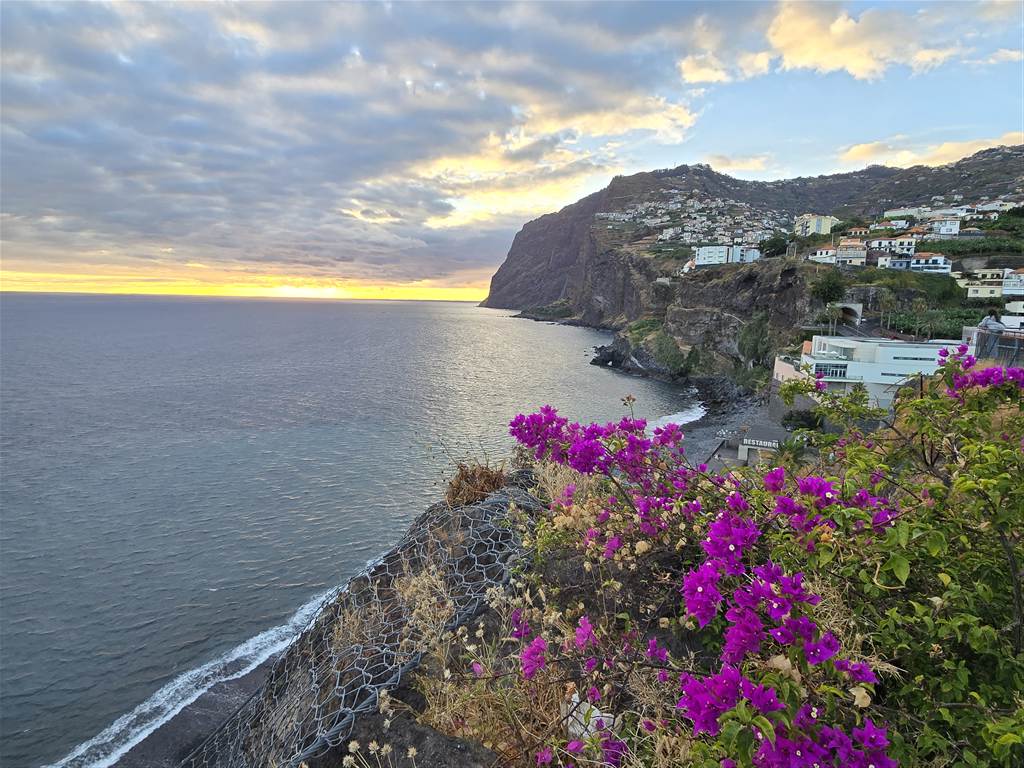 השקיעה מתקרבת ואנחנו עולים לאחת התצפיות של הכפר – Ilhéu de Câmara de Lobos