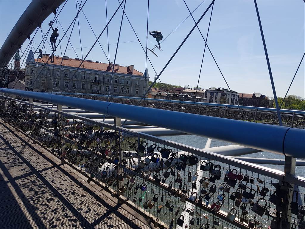 הגשר מתהדר גם בדמויות שתלויות עליו וגם בהיותו "גשר המנעולים" של קרקוב, בדומה לגשרים רבים אחרים בערים שונות..